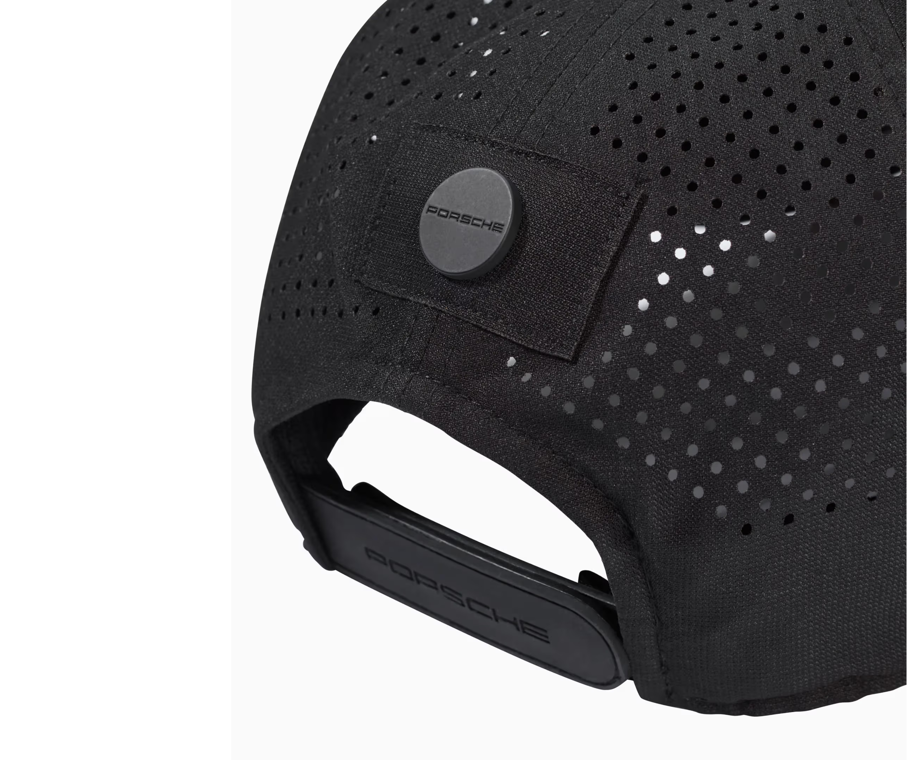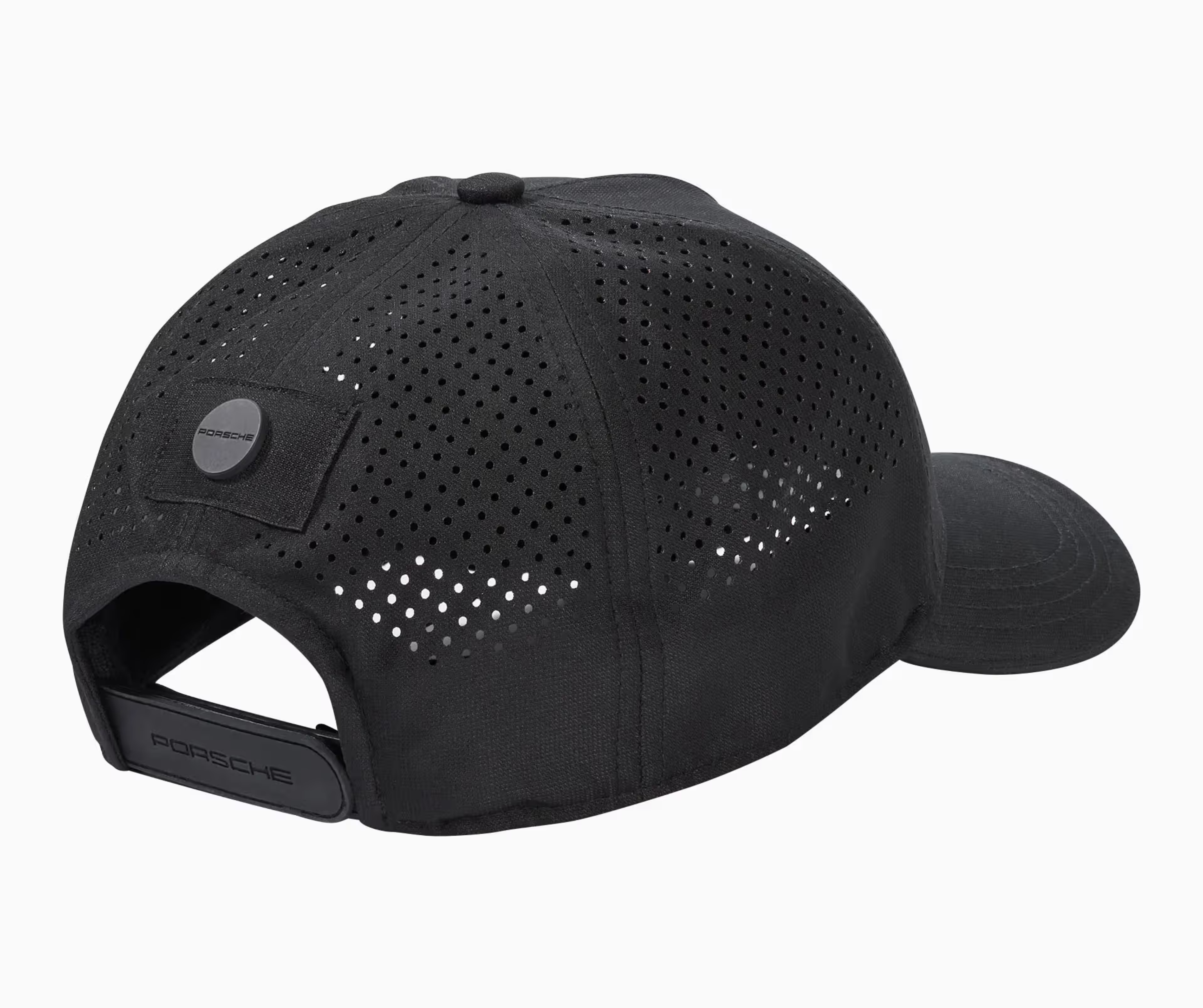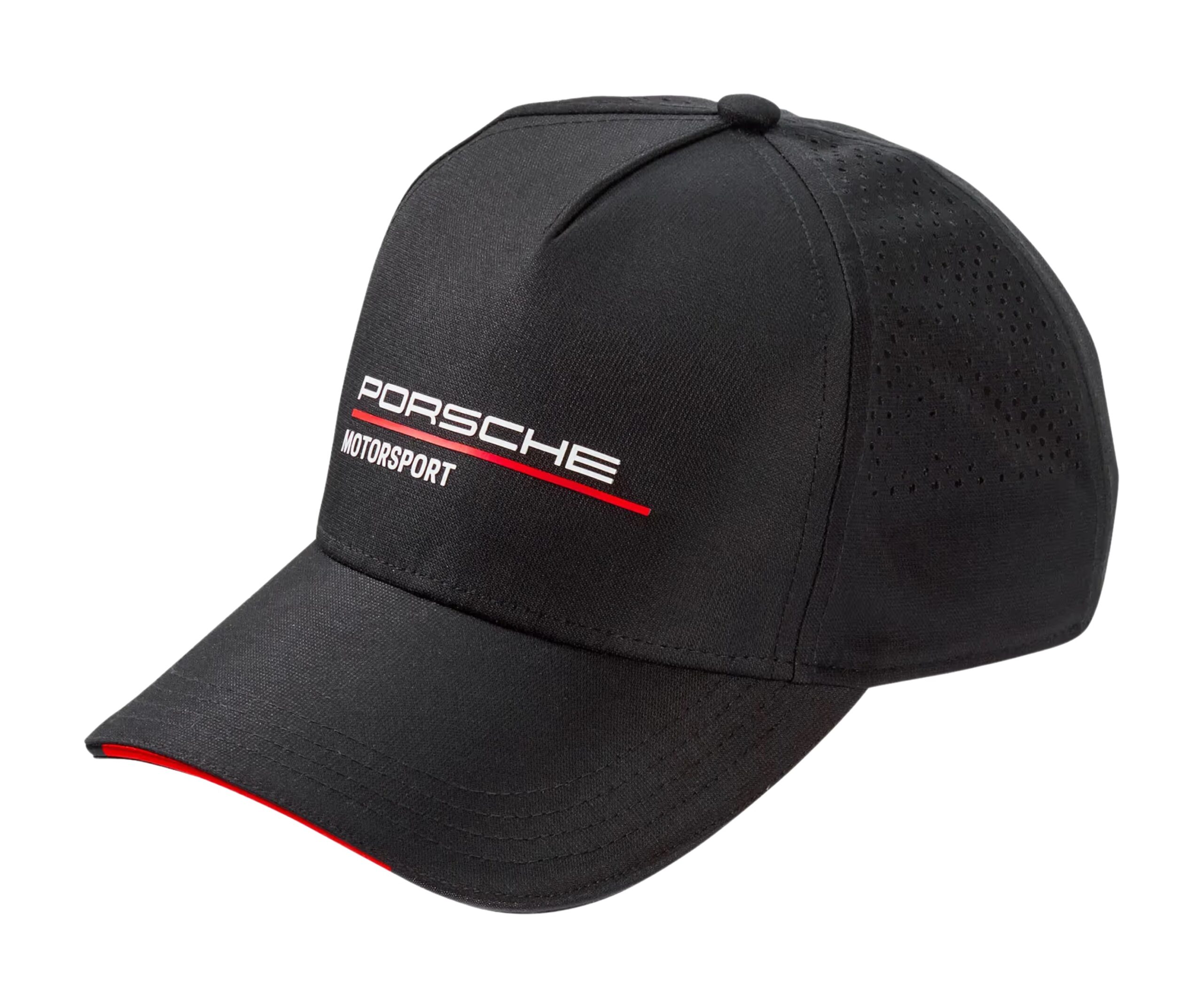 Modelo negro del equipo Porsche Motorsport. Estilo minimalista, logo frontal, visera curva, tela transpirable y ajuste con broche metálico. Ideal para fans del automovilismo de alto nivel.