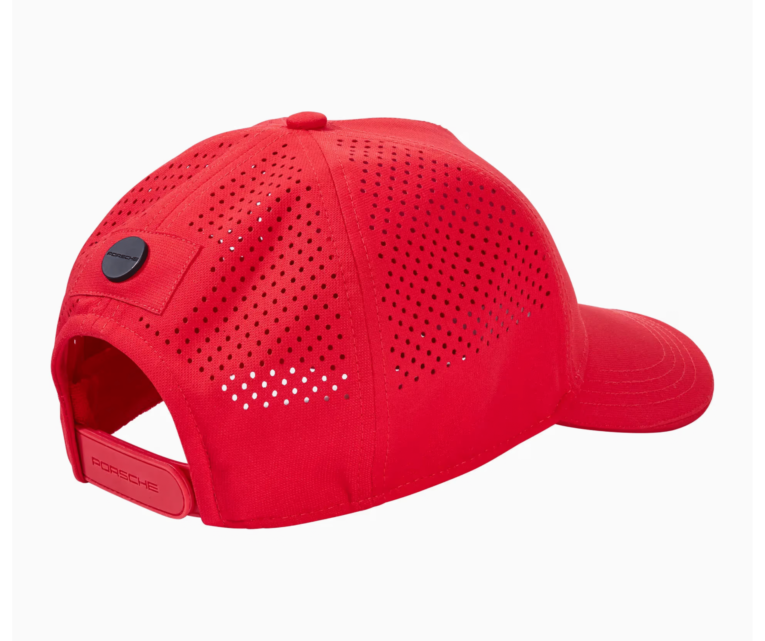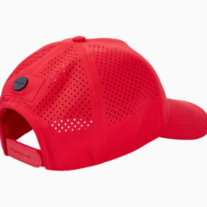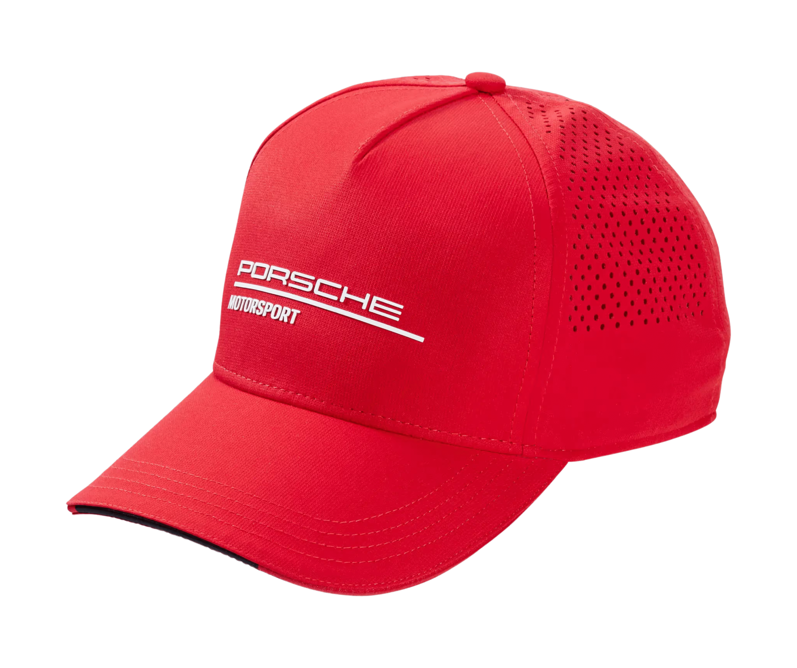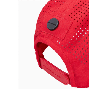 Gorra roja oficial del equipo Porsche Motorsport. Presenta el logo bordado, visera curva, tela ligera y cierre metálico ajustable. Diseño elegante y deportivo para verdaderos entusiastas.