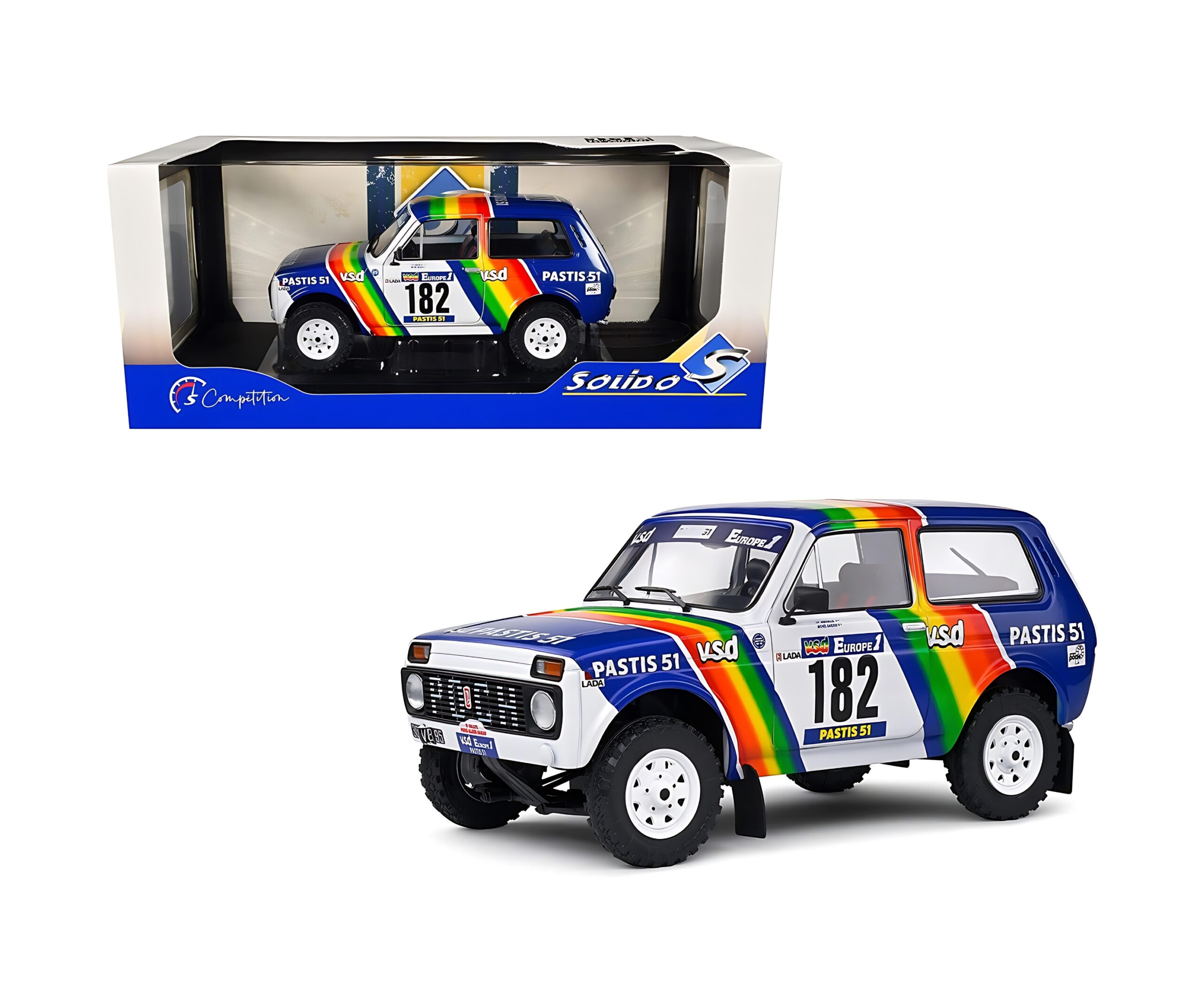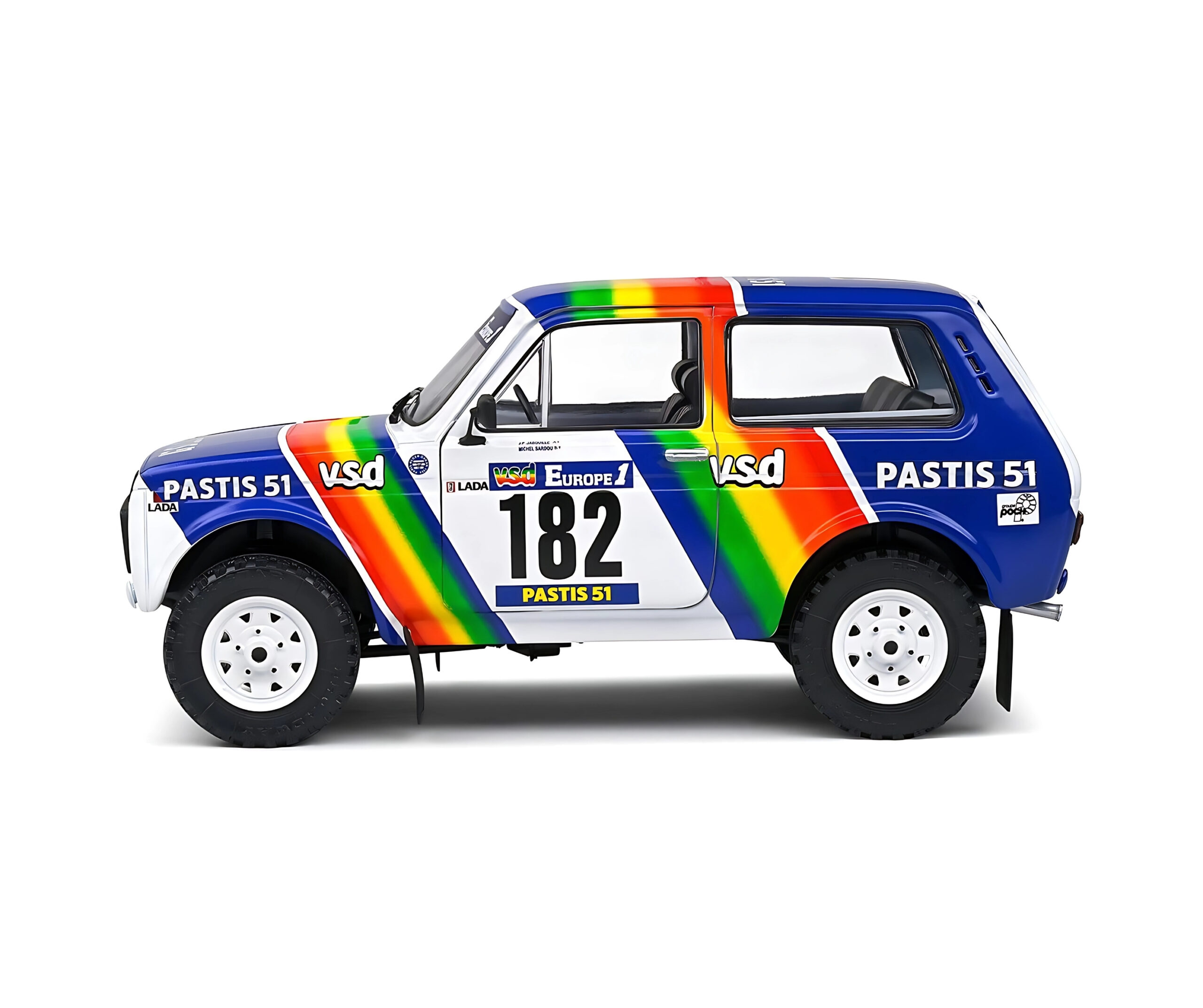 Lada Niva #182 Dakar 1984 – Jabouille & Sardou – Solido 1:18Lada Niva #182 Dakar 1984 – Jabouille & Sardou – Solido 1:18