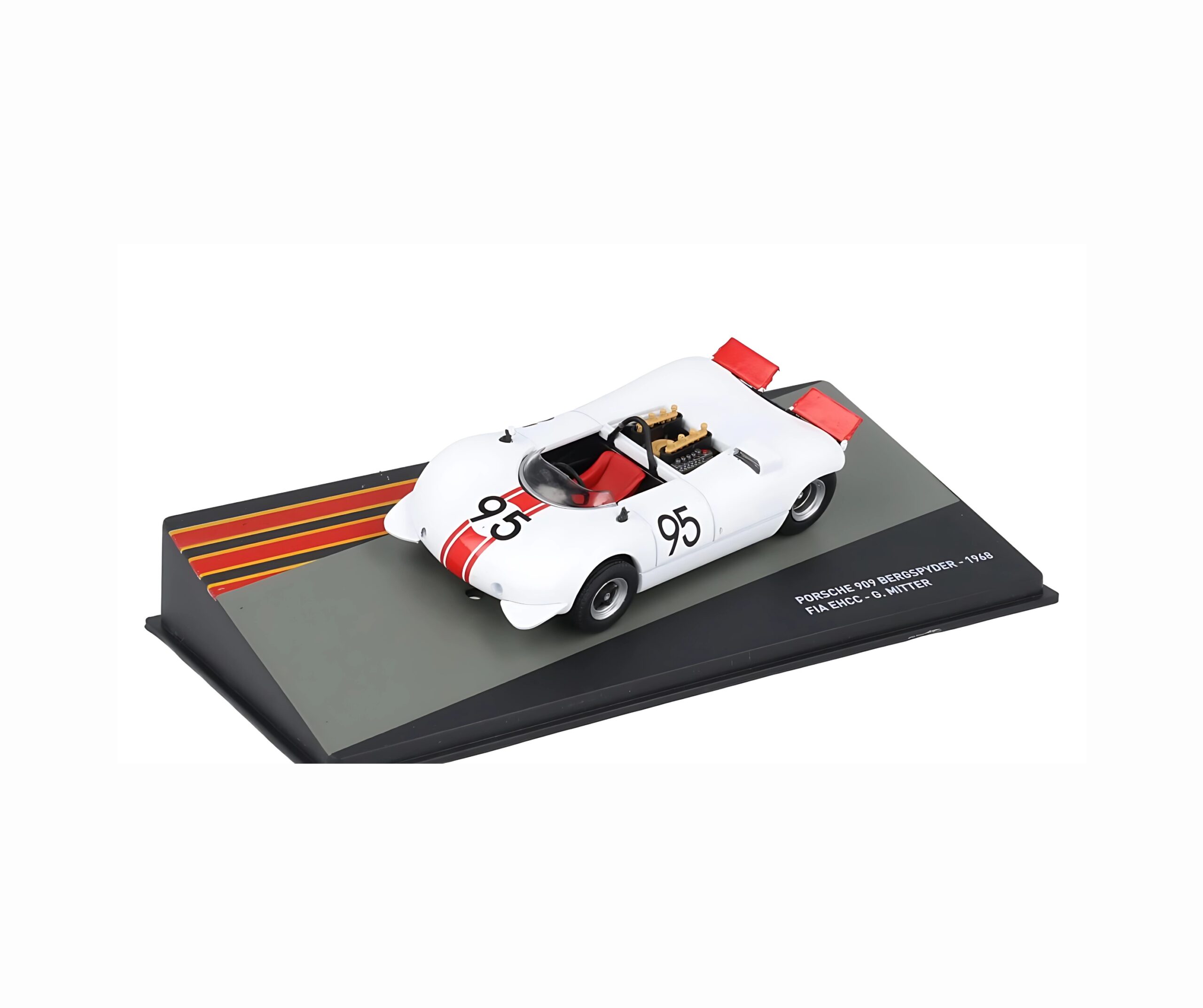Diseñado para dominar las subidas más desafiantes, el Porsche 909 Bergspyder fue una máquina de competición pura. Esta réplica 1:43 captura su chasis ultraligero y espíritu competitivo, siendo una pieza única en la historia Porsche.