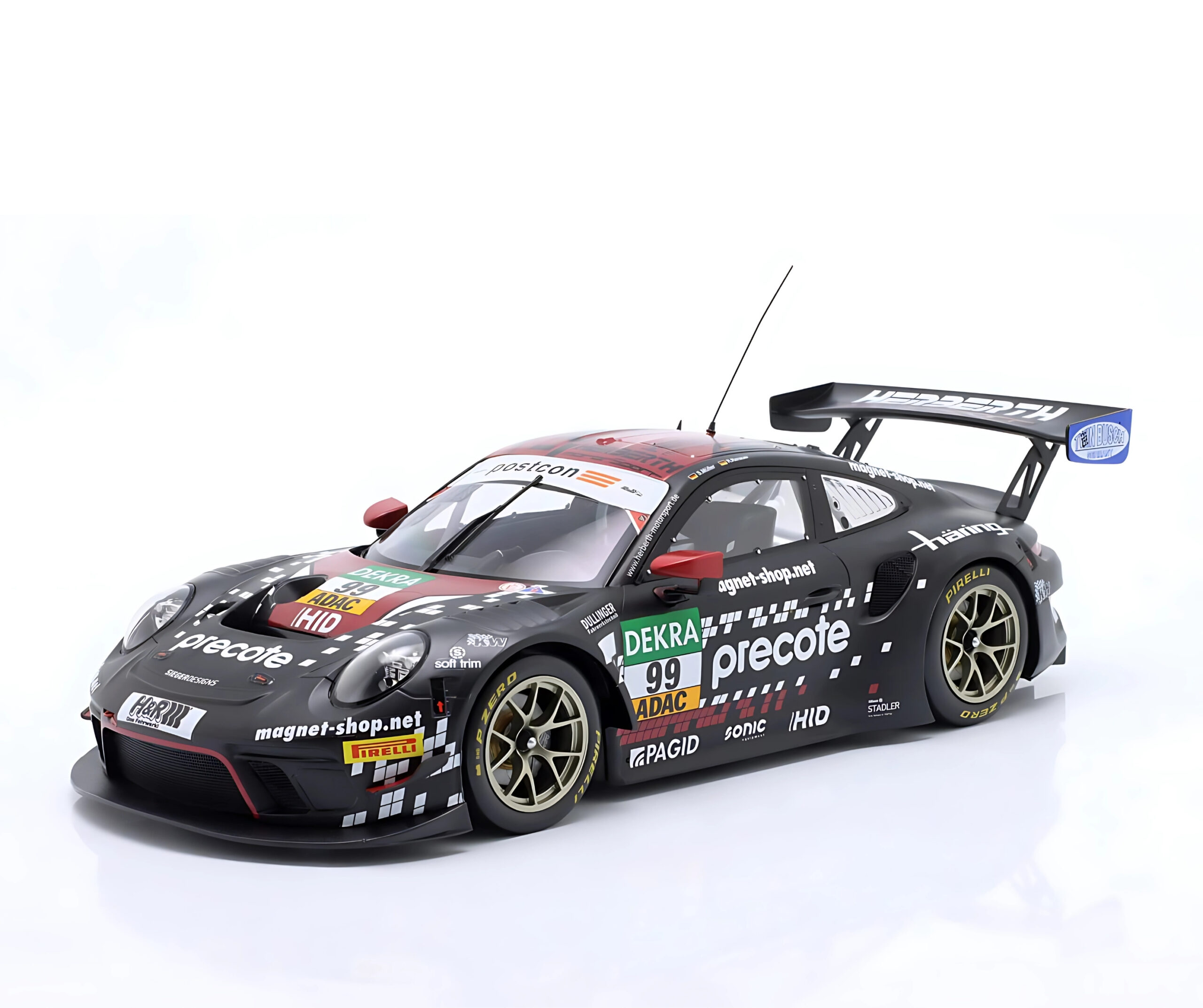 Este Porsche 911 GT3 R #99, protagonista del ADAC GT Masters 2021 con Herberth Motorsport, encapsula rendimiento, tradición y tecnología. En escala 1:43, es ideal para coleccionistas que valoran la precisión en autos de carrera. Un ícono moderno del GT europeo que no puede faltar en una colección bien curada.